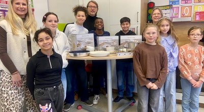 Im Rahmen einer Übergabe überreichte Frau Hunsche vom Förderverein einen Gutschein der Stadtwerke Schüttorf im Wert von 500 Euro an die Oberschule Schüttorf. Mit diesem Gutschein konnten Geschirr, Besteck sowie Töpfe und Pfannen angeschafft werden, die nun der Schule zur Verfügung stehen.