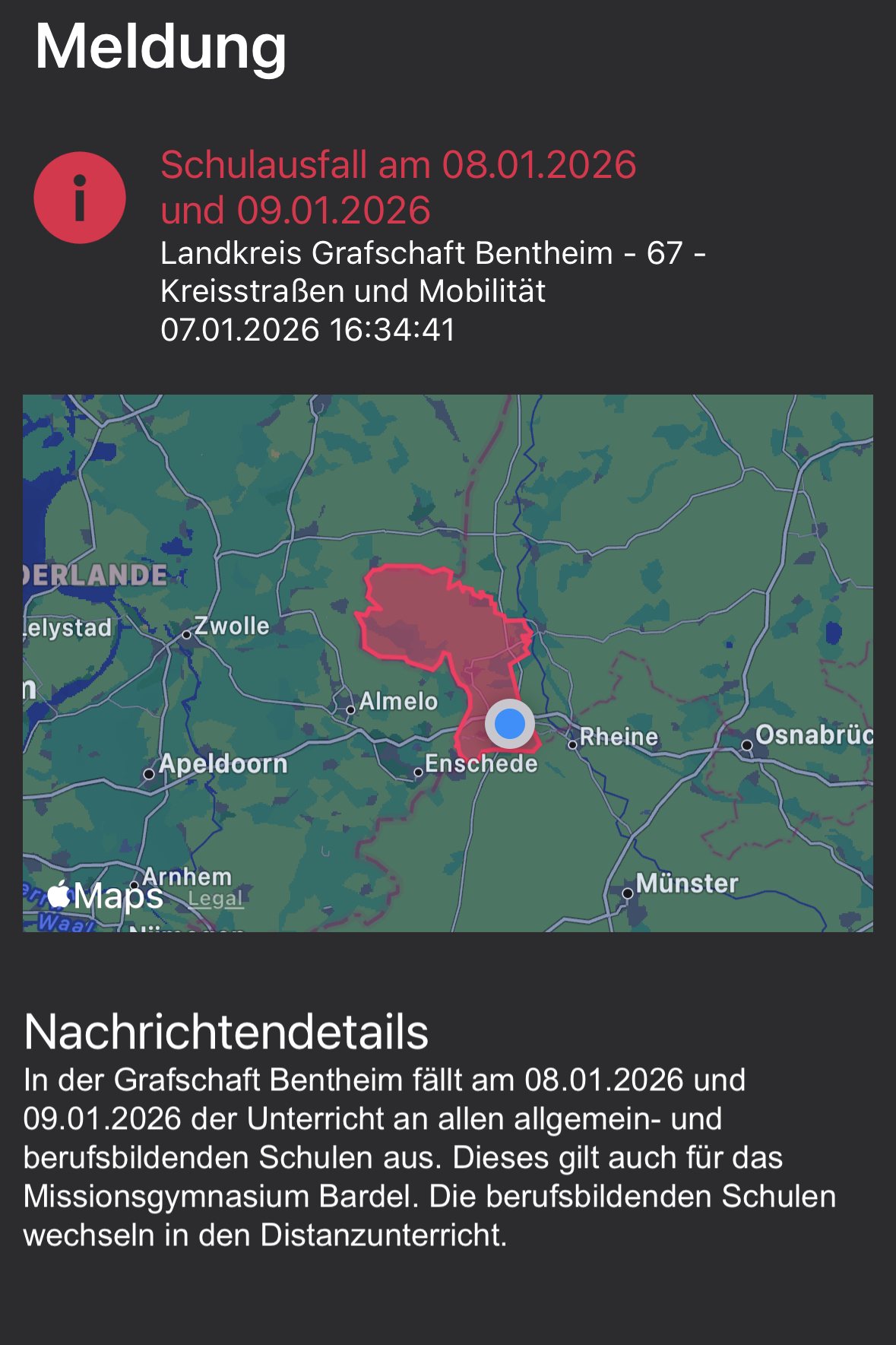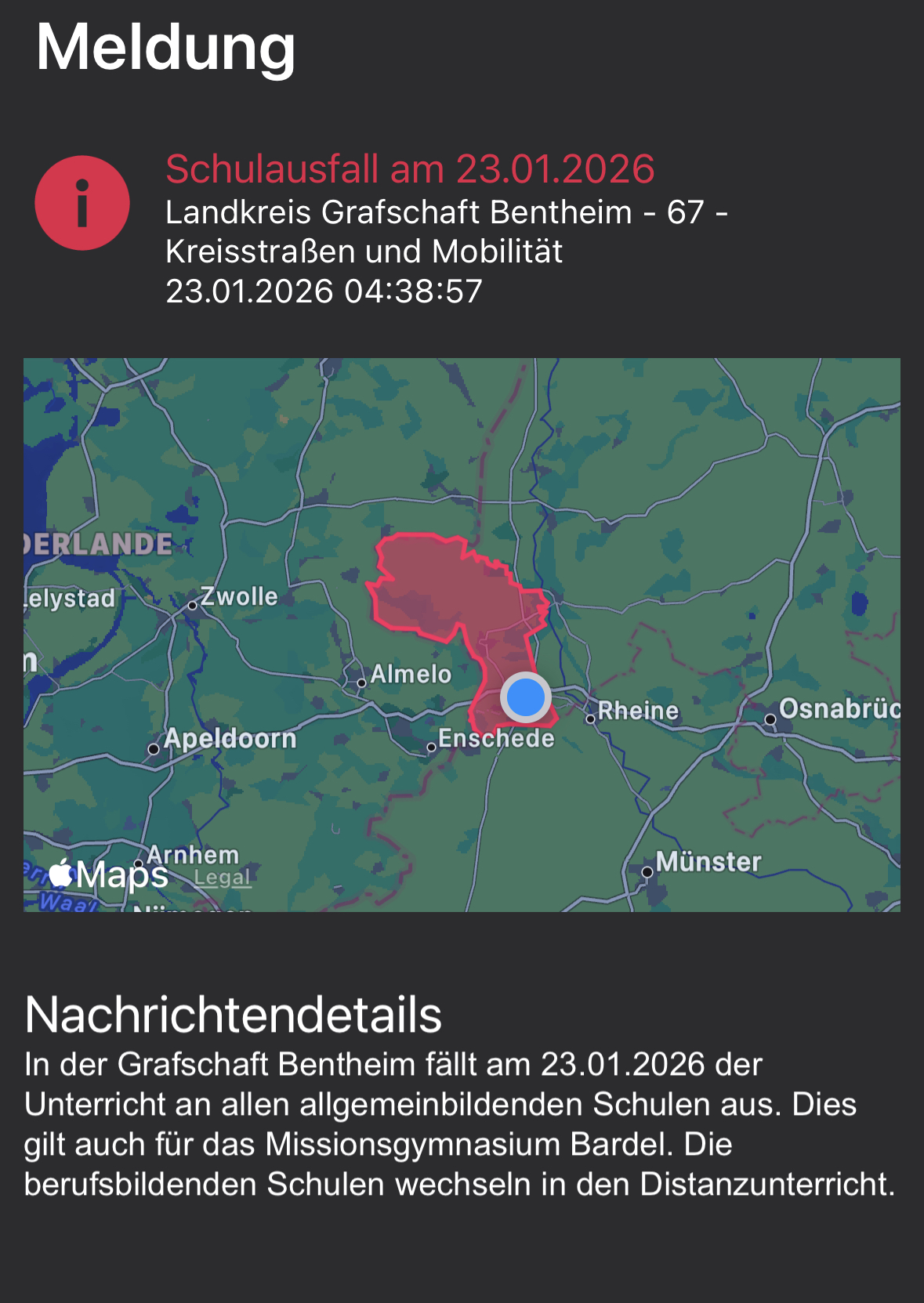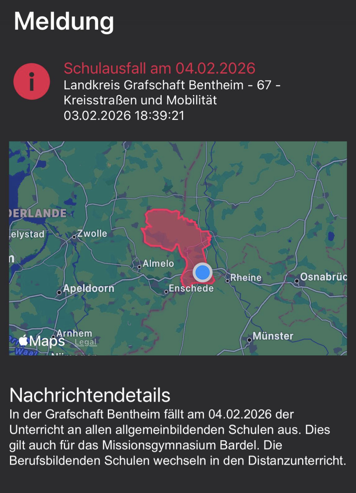 am heutigen Freitag, 23.01.26 fällt der Unterricht an allen allgemeinbildenden Schulen im Landkreis Grafschaft Bentheim aus! Bitte bleibt sicher zuhause, die…