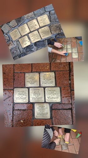 Am 9. November, dem Tag des Gedenkens an die Opfer des Nationalsozialismus, haben die Schüler*innen des Religionskurses 8b/d die Stolpersteine in unserer Umgebung gereinigt.
